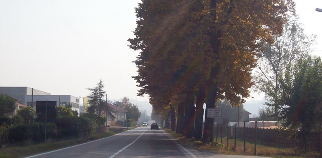 Veduta della strada statale 10 (Padana inferiore) di ingresso a Villafranca d'Asti.