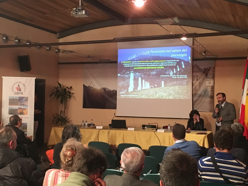 | Titolo: Foto del Convegno su “Conoscenza, salvaguardia e valorizzazione dei paesaggi della viticoltura eroica”, Institut Agricole Régional, Aosta, venerdì 23 febbraio 2018, ore 14.30. Relazione del Prof. Marco Devecchi (Coordinatore per l’Università di Torino del Corso di Laurea magistrale interateneo in “Progettazione delle aree verdi e del Paesaggio e Presidente dell’Osservatorio del Paesaggio per il Monferrato e l’Astigiano) su “Per un paesaggio viticolo di eccellenza: il ruolo e degli Osservatori del paesaggio nella prospettiva della Convenzione Europea del Paesaggio”. | Soggetto: Foto del Convegno su “Conoscenza, salvaguardia e valorizzazione dei paesaggi della viticoltura eroica”, Institut Agricole Régional, Aosta, venerdì 23 febbraio 2018, ore 14.30. Relazione del Prof. Marco Devecchi (Coordinatore per l’Università di Torino del Corso di Laurea magistrale interateneo in “Progettazione delle aree verdi e del Paesaggio e Presidente dell’Osservatorio del Paesaggio per il Monferrato e l’Astigiano) su “Per un paesaggio viticolo di eccellenza: il ruolo e degli Osservatori del paesaggio nella prospettiva della Convenzione Europea del Paesaggio”. | Commento: Foto del Convegno su “Conoscenza, salvaguardia e valorizzazione dei paesaggi della viticoltura eroica”, Institut Agricole Régional, Aosta, venerdì 23 febbraio 2018, ore 14.30. Relazione del Prof. Marco Devecchi (Coordinatore per l’Università di Torino del Corso di Laurea magistrale interateneo in “Progettazione delle aree verdi e del Paesaggio e Presidente dell’Osservatorio del Paesaggio per il Monferrato e l’Astigiano) su “Per un paesaggio viticolo di eccellenza: il ruolo e degli Osservatori del paesaggio nella prospettiva della Convenzione Europea del Paesaggio”. | Fotografo: Enrico Pomatto | Fotocamera: iPhone 6s | Data: 23/02/18 16.12 | Risoluzione: 1024 x 768 | Exp. bias: 0 EV | Tempo di Esposizione: 1/16s | Diaframma: 2.2 | Lunghezza Focale: 4.15mm | Flash: Flash did not fire, auto |